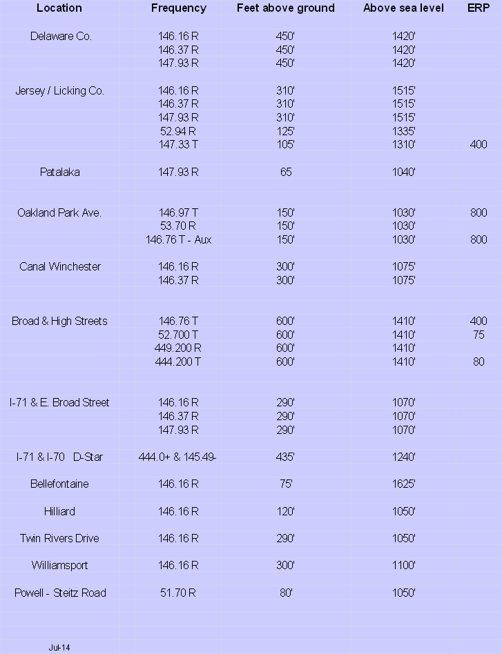 NOTE: Not every repeater has a receiver at every site listed on the map. Look below for each repeaters information and site listing. Transmit locations are listed with ERP ratings.